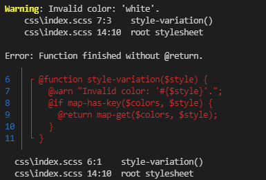 如果你使用的VSCode的Live Sass Compiler插件,可以参考我的配置,这个插件用的 Sass版本是LibSass3.5.4,对有些指令存在兼容性和不支持的情况。